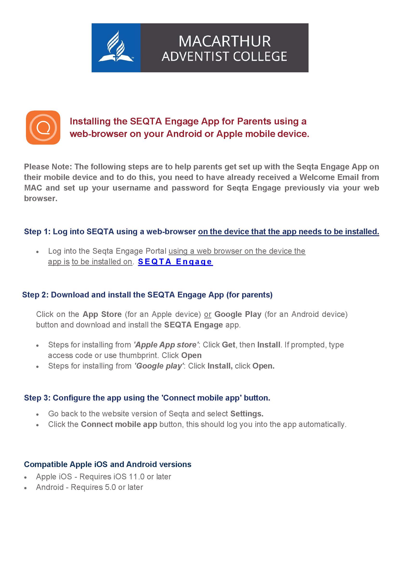 Seqta Engage Instructions