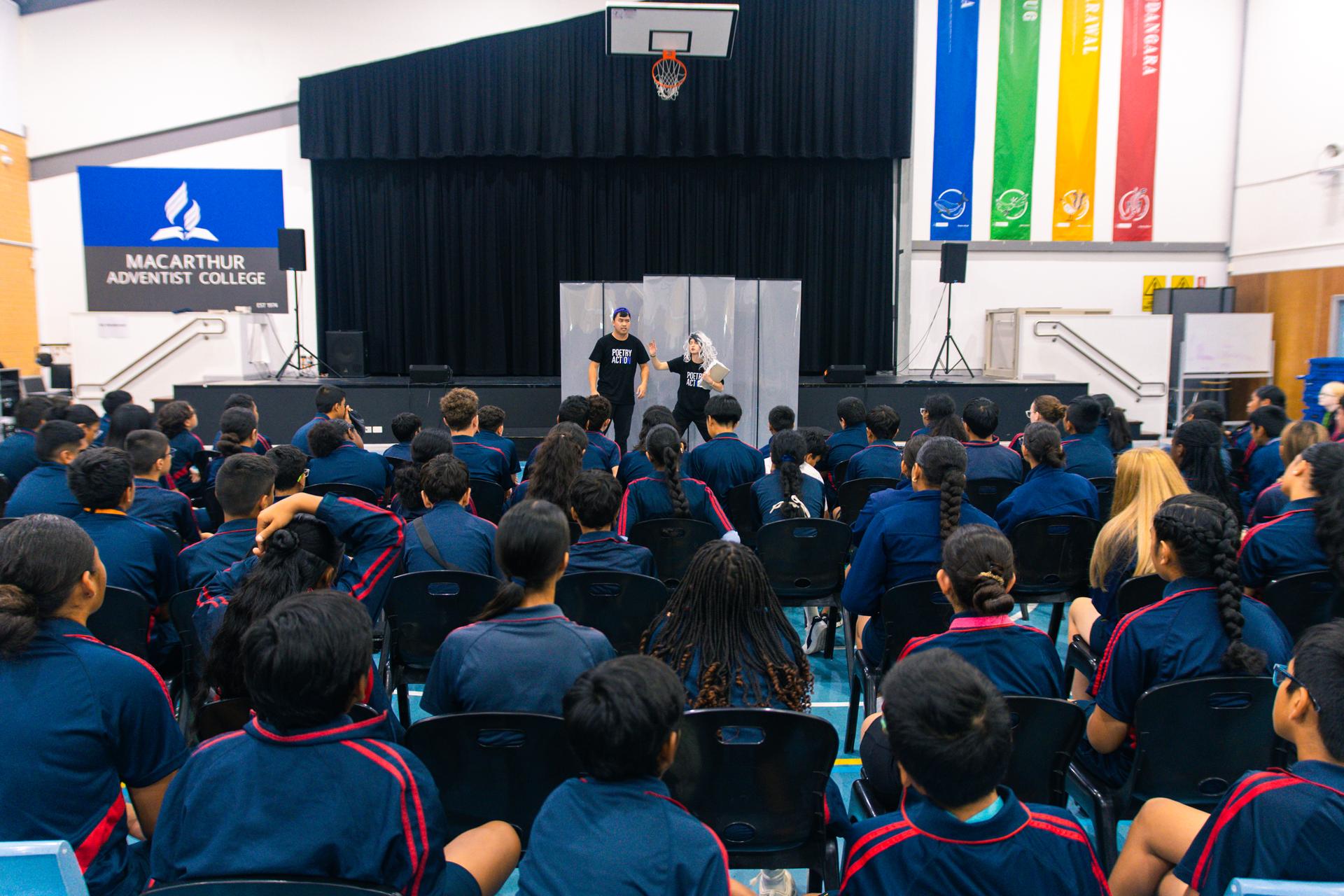 Poetry in Action is an engaging and interactive performance group that brings literature to life through dynamic storytelling and drama. Their visit was an exciting experience for our students, transforming poetry into a vibrant and relatable art form. Through humour, movement, and powerful performances, they demonstrated how words can evoke emotion, inspire creativity, and connect us to different perspectives. Students were captivated by the energy and talent of the performers, making literature more accessible and enjoyable. It was a fantastic opportunity for the students, and we hope they have been inspired from what they have experienced today.