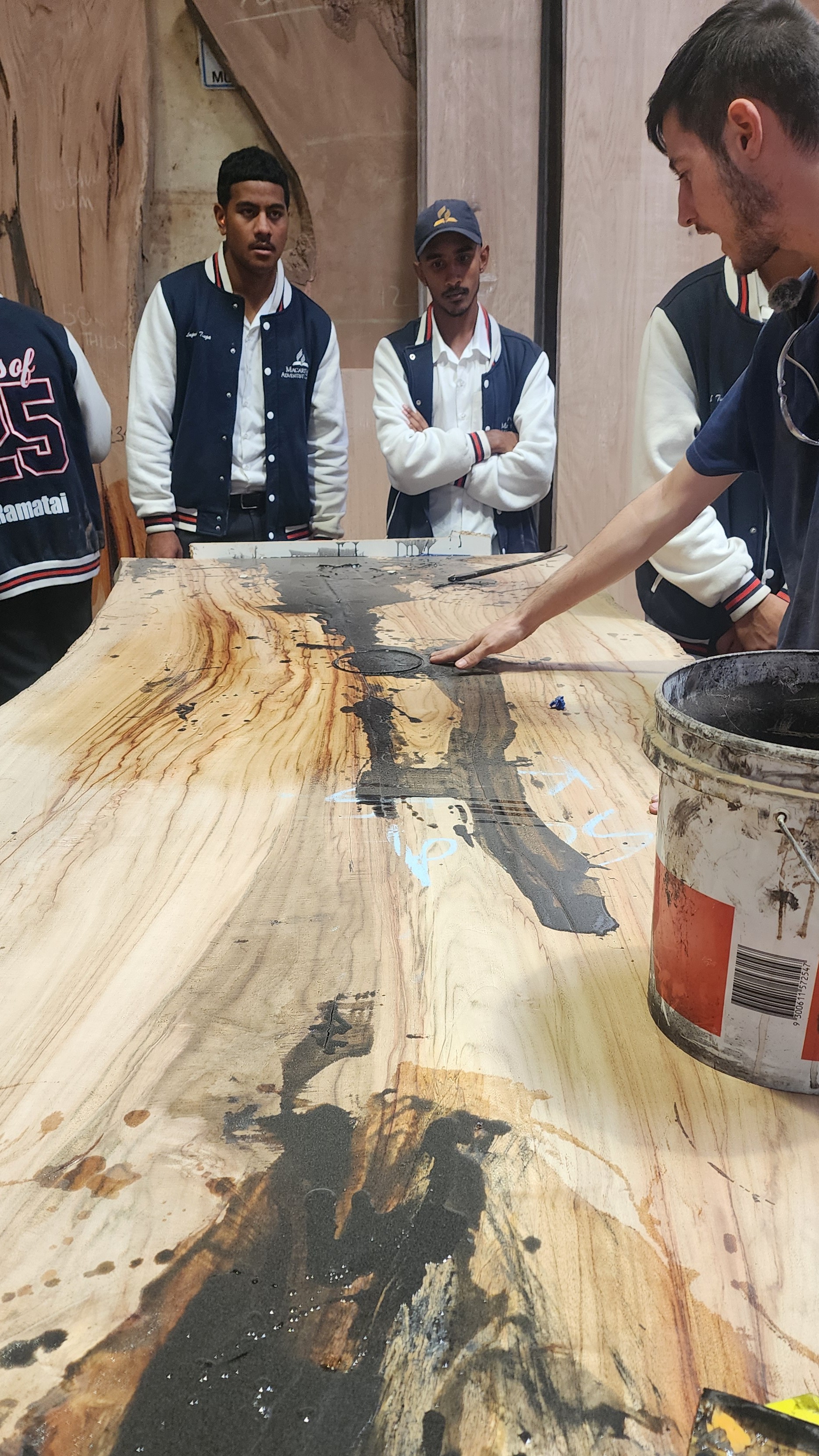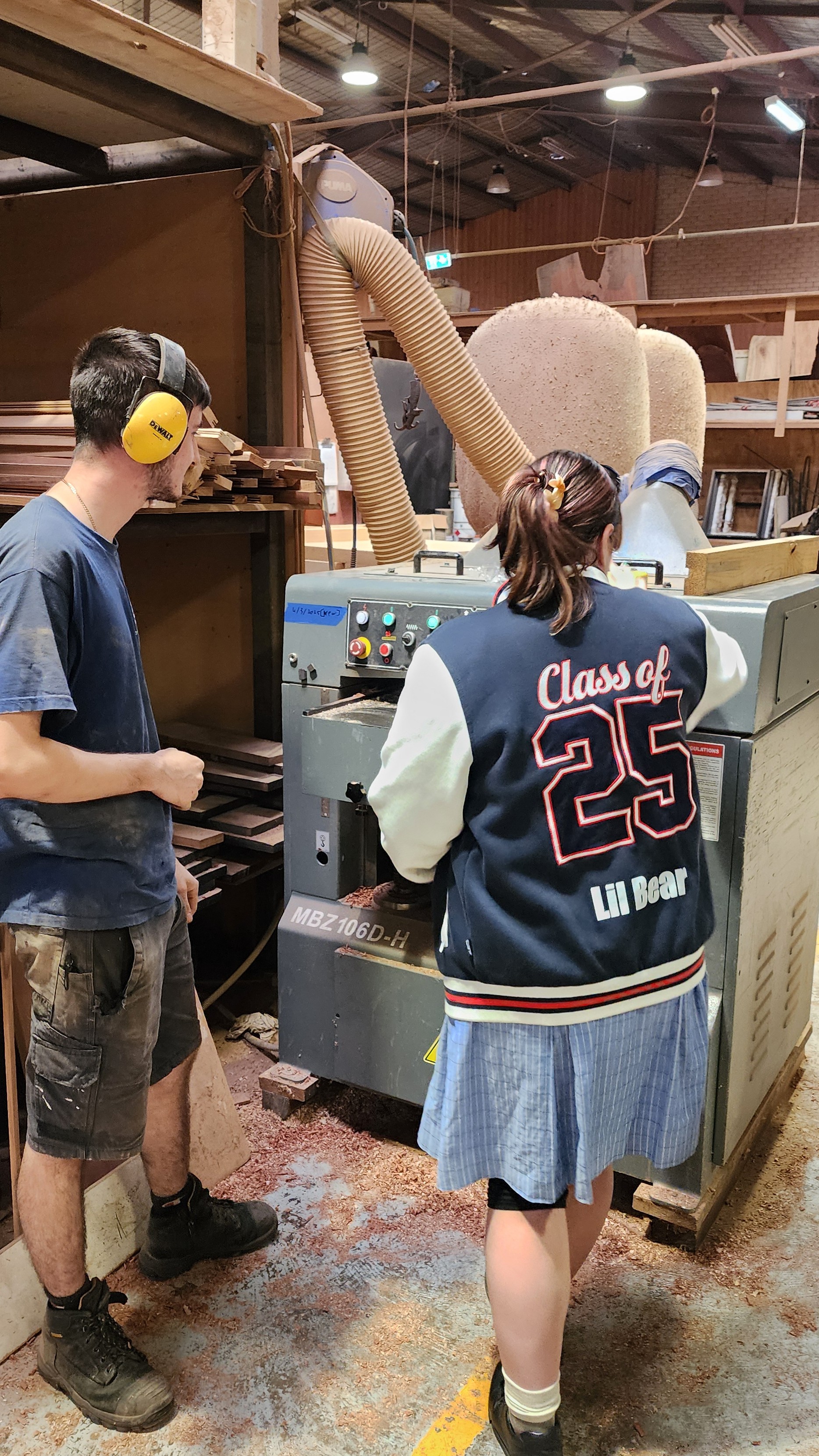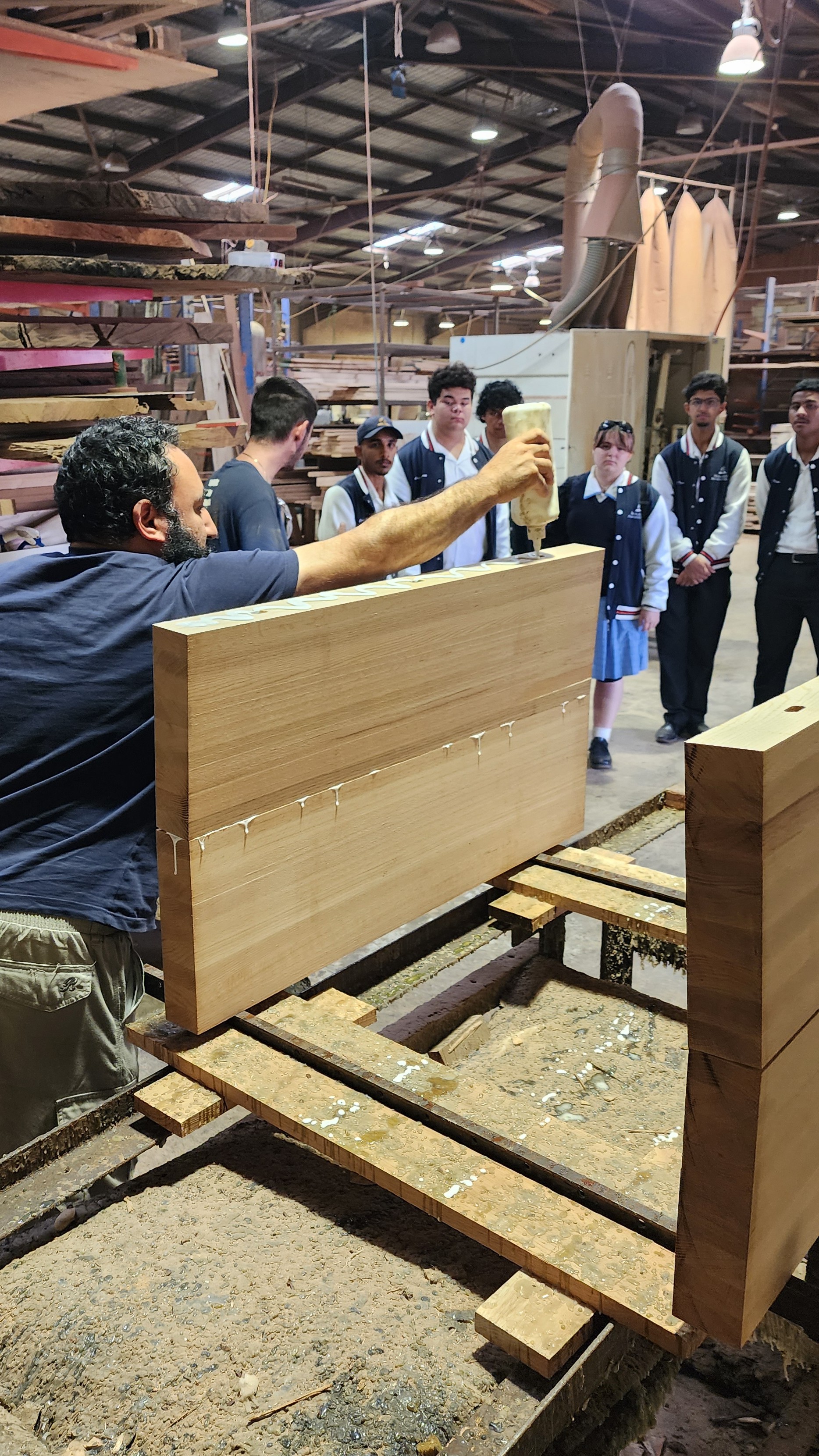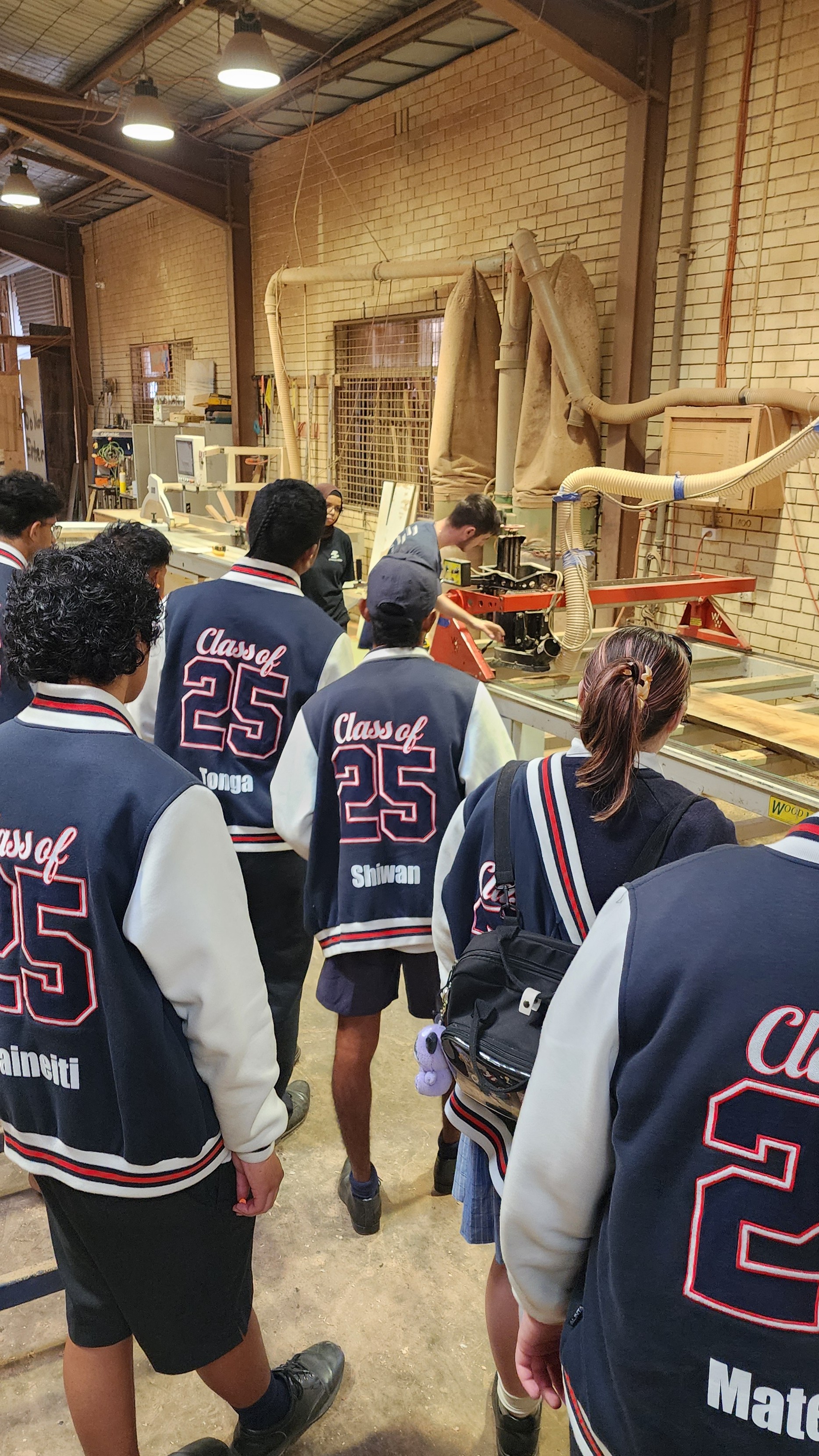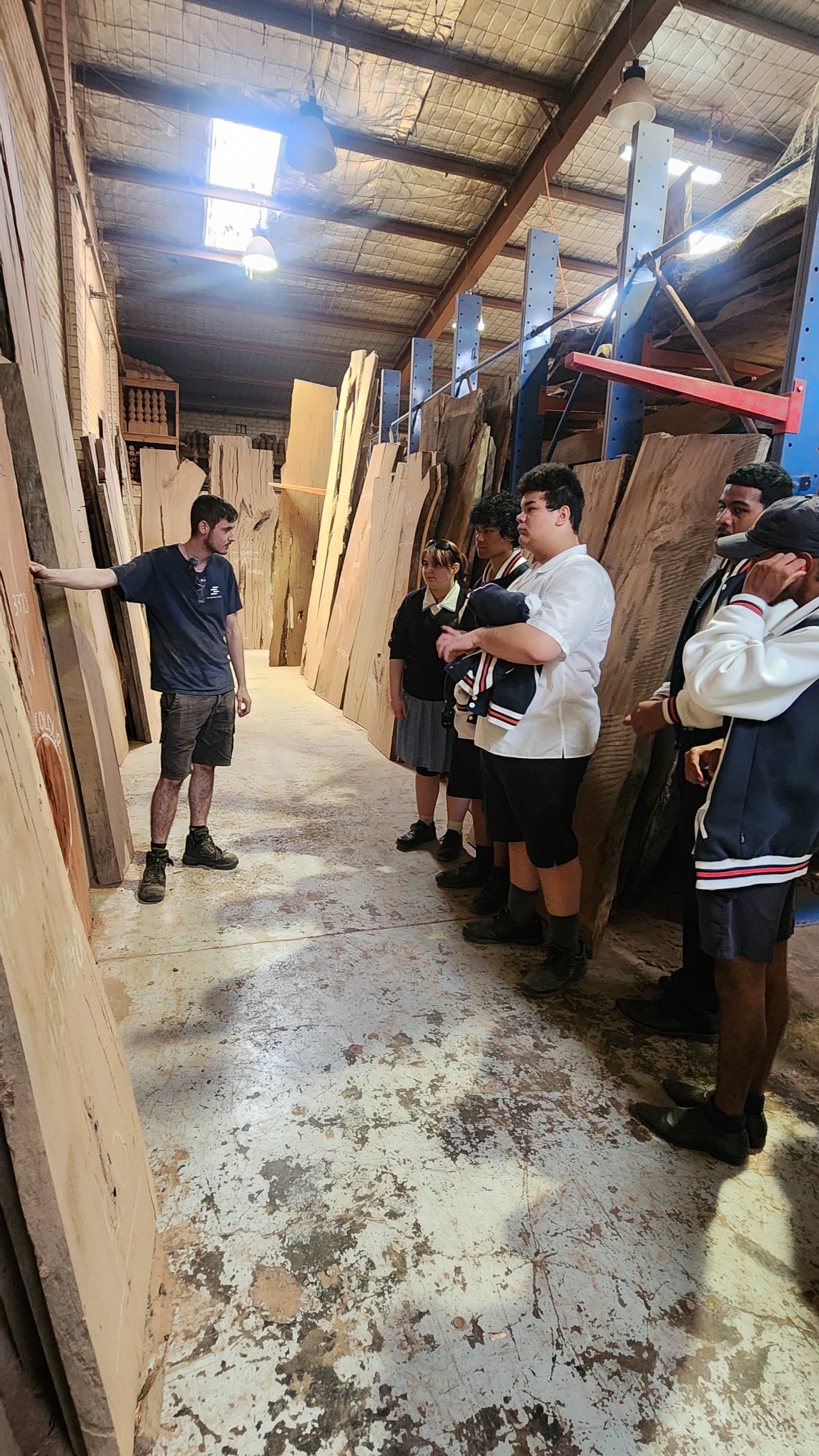 On Monday the 10th of March, students from year 12 IDT visited Go Natural Timbers in Auburn on an excursion. The aim of this was to help students get hands on experience on some of the machines and tools that are used by this company that produces timber slabs and other types of timber to produce staircases, furniture and other wooden projects. We have been really impressed by the way we were received by the owner of this company, Rami and the way he had everything set up for my students. They did a lot of set up and removed a few benches and other machinery so our students could safely move around and make the best out of the trip.