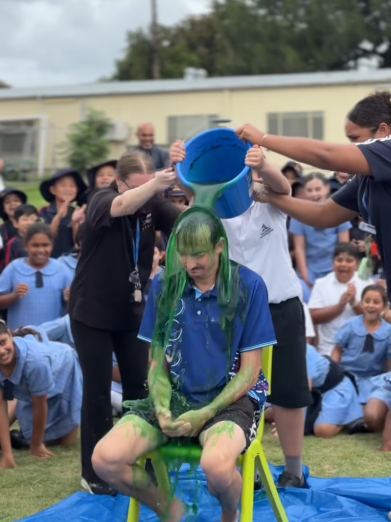 To celebrate their efforts, we’ve already been able to reward students along the way. So far, we’ve given out ice blocks to both a primary and a secondary class, as well as two canteen vouchers. Last week, 5A topped the leaderboard with the highest fundraising total and earned the ultimate reward – the chance to slime Mr G! This was definitely not one to miss.
