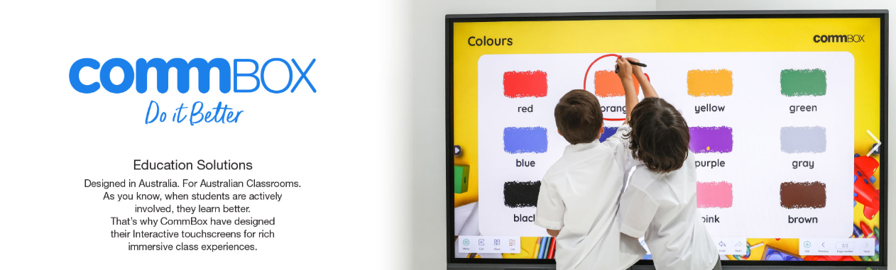 Commbox smartboards are high-quality interactive touchscreens designed to enhance teaching and learning. They allow teachers to deliver dynamic, engaging lessons using multimedia, interactive activities, and real-time collaboration. With built-in tools that support visual learning, creativity, and student participation, Commboxes help create a more interactive and effective classroom environment where students can engage more deeply with their learning.