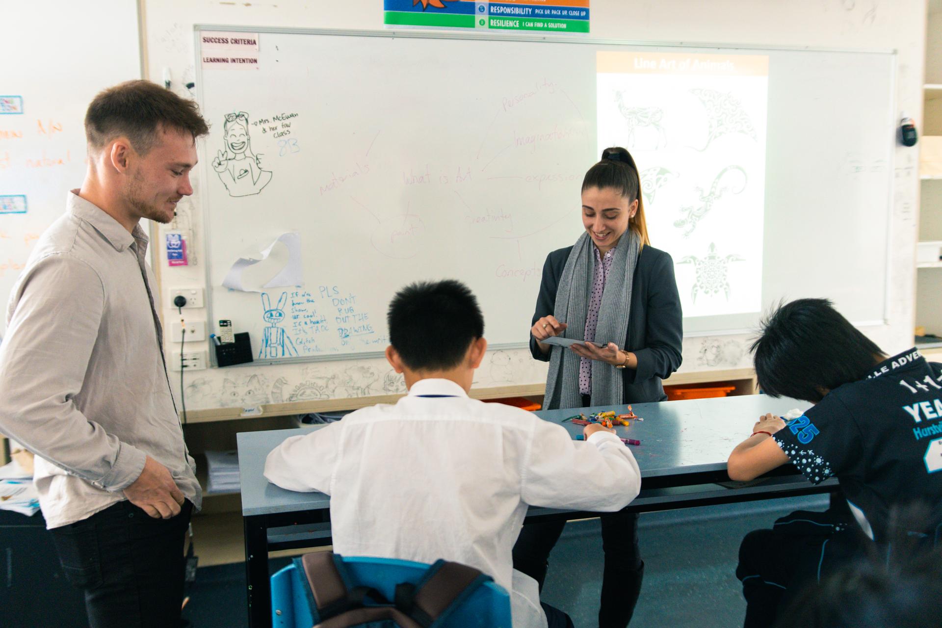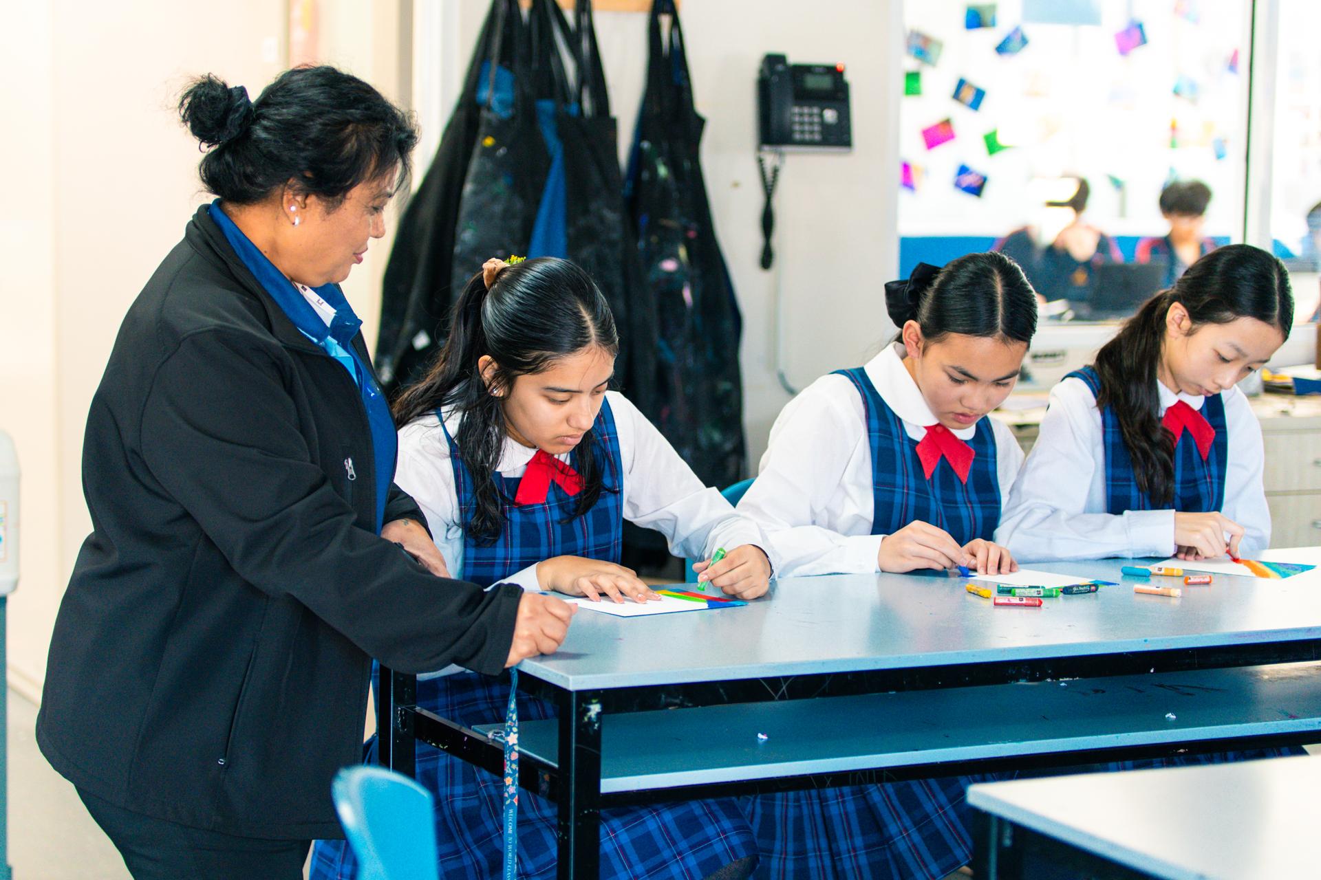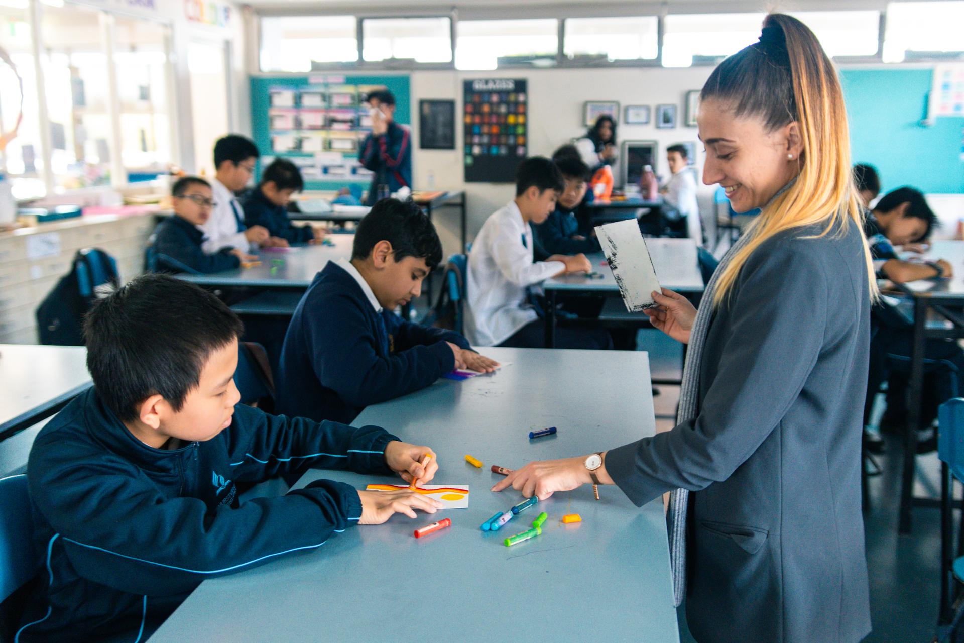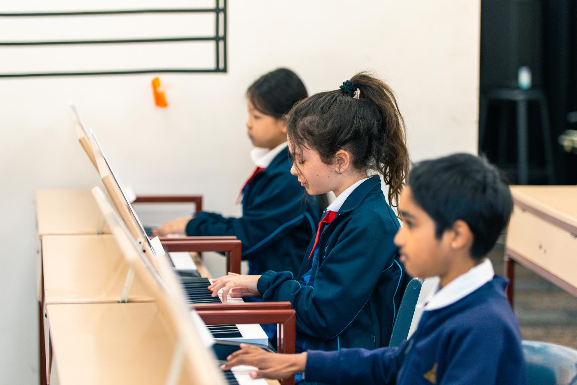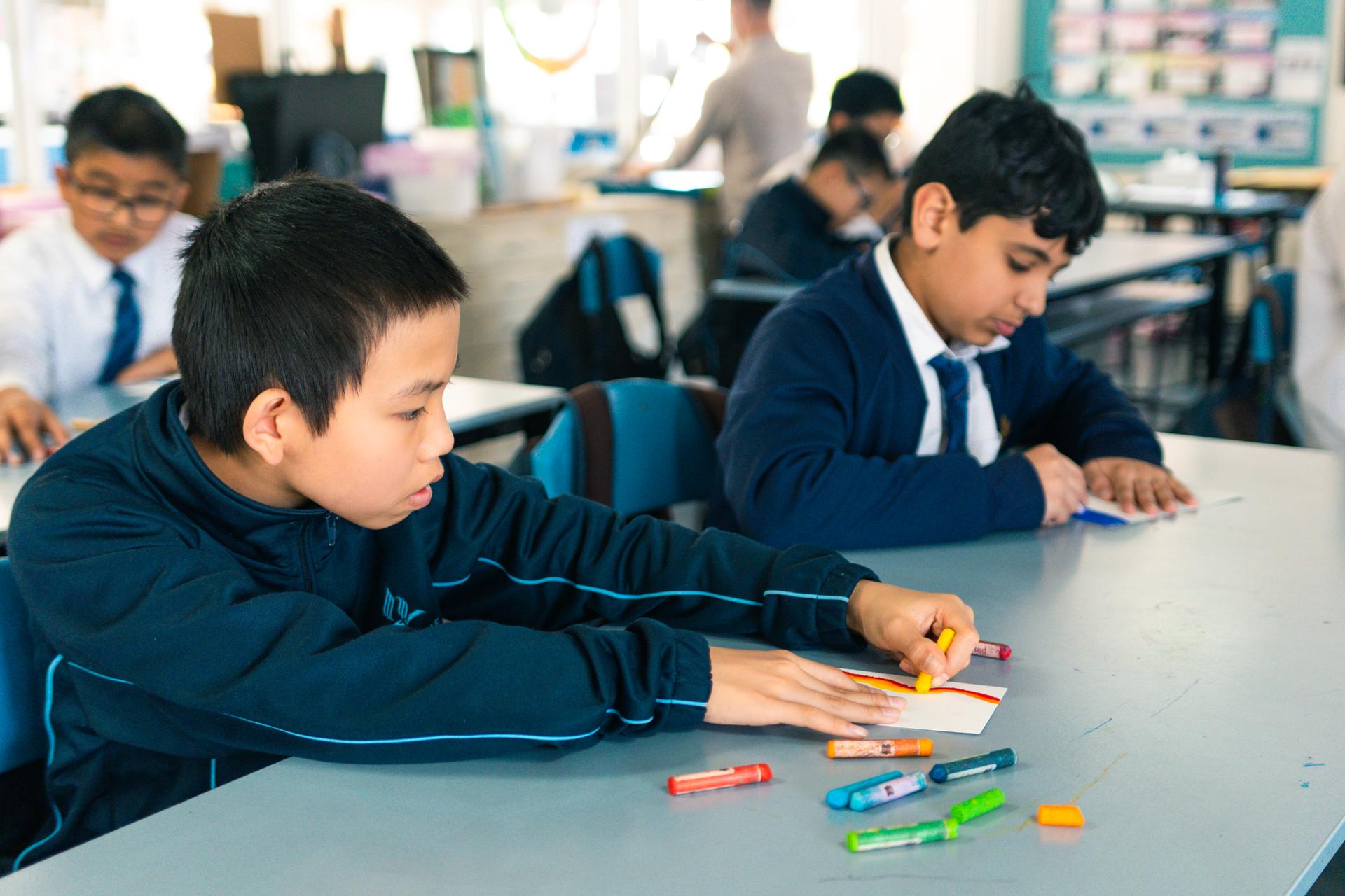 Students had a tour of the learning spaces in Secondary and then rotated between a Science experiment with Mr Raj, creating oil pastel drawing in Visual Arts with Mrs Smith and practicing rhythm and piano skills in Music with Miss McEwan.